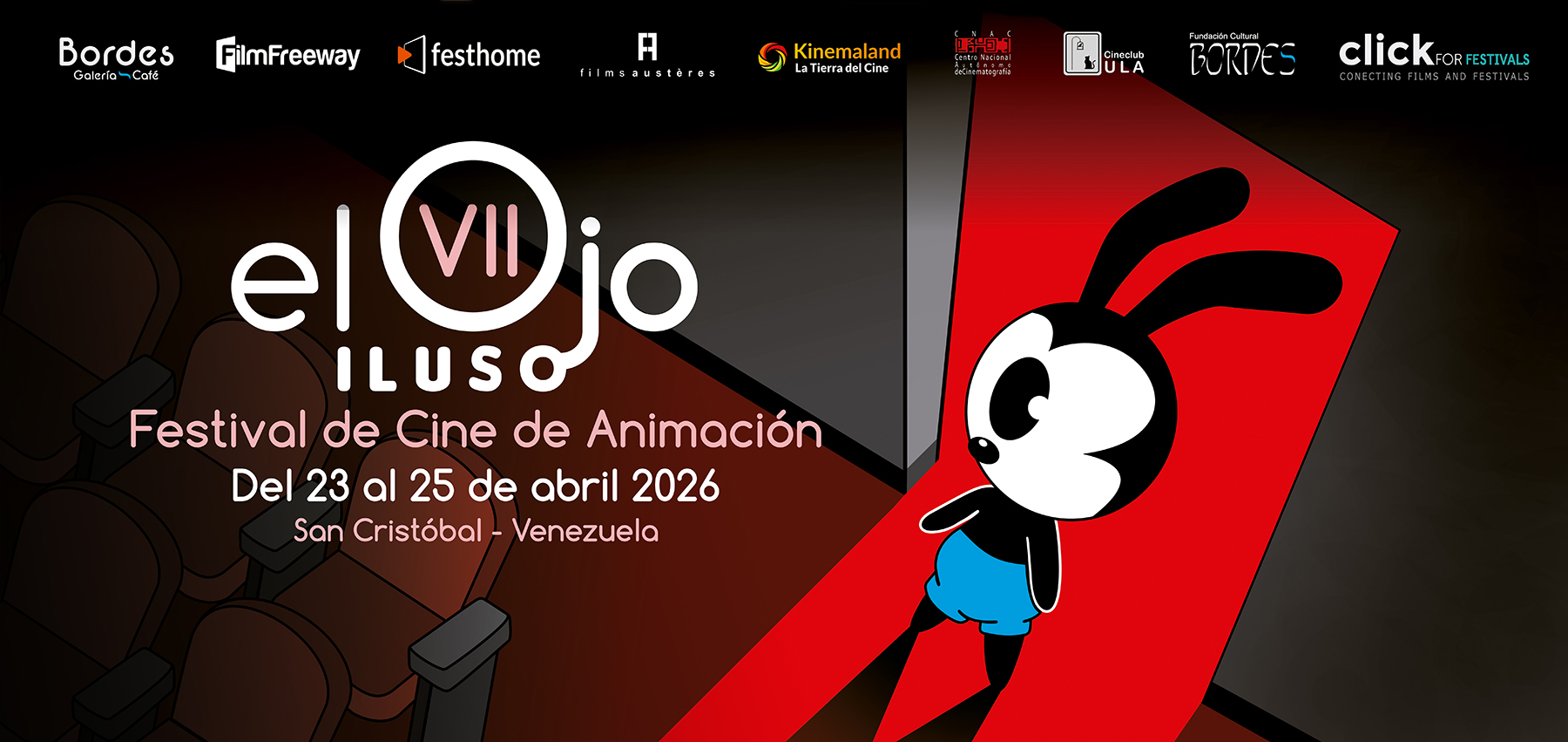 El jurado encargado de evaluar y premiar los trabajos seleccionados para el VII Festival de Cine de Animación El Ojo Iluso realizado del 23 al 25 de abril de 2026, desde la ciudad de San Cristóbal, Venezuela: