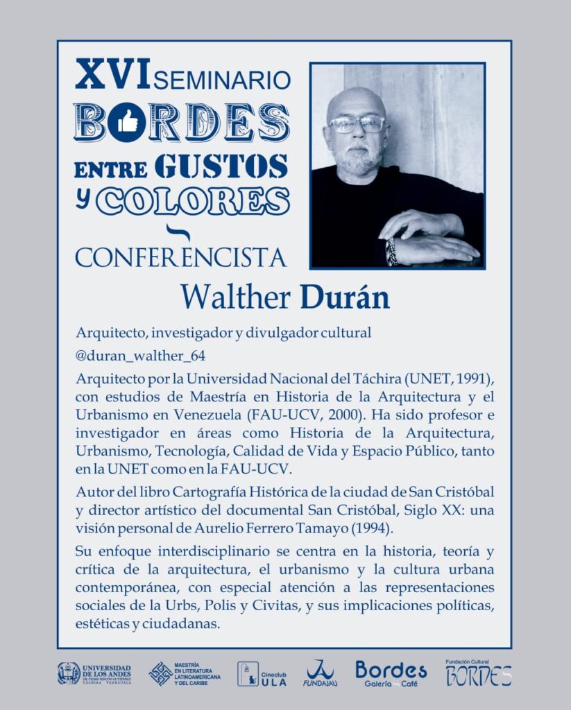 Avalado por la Fundación Bordes, Maestría en Literatura Latinoamericana y del Caribe de la Universidad de Los Andes y el Museo Antropológico del Táchira.