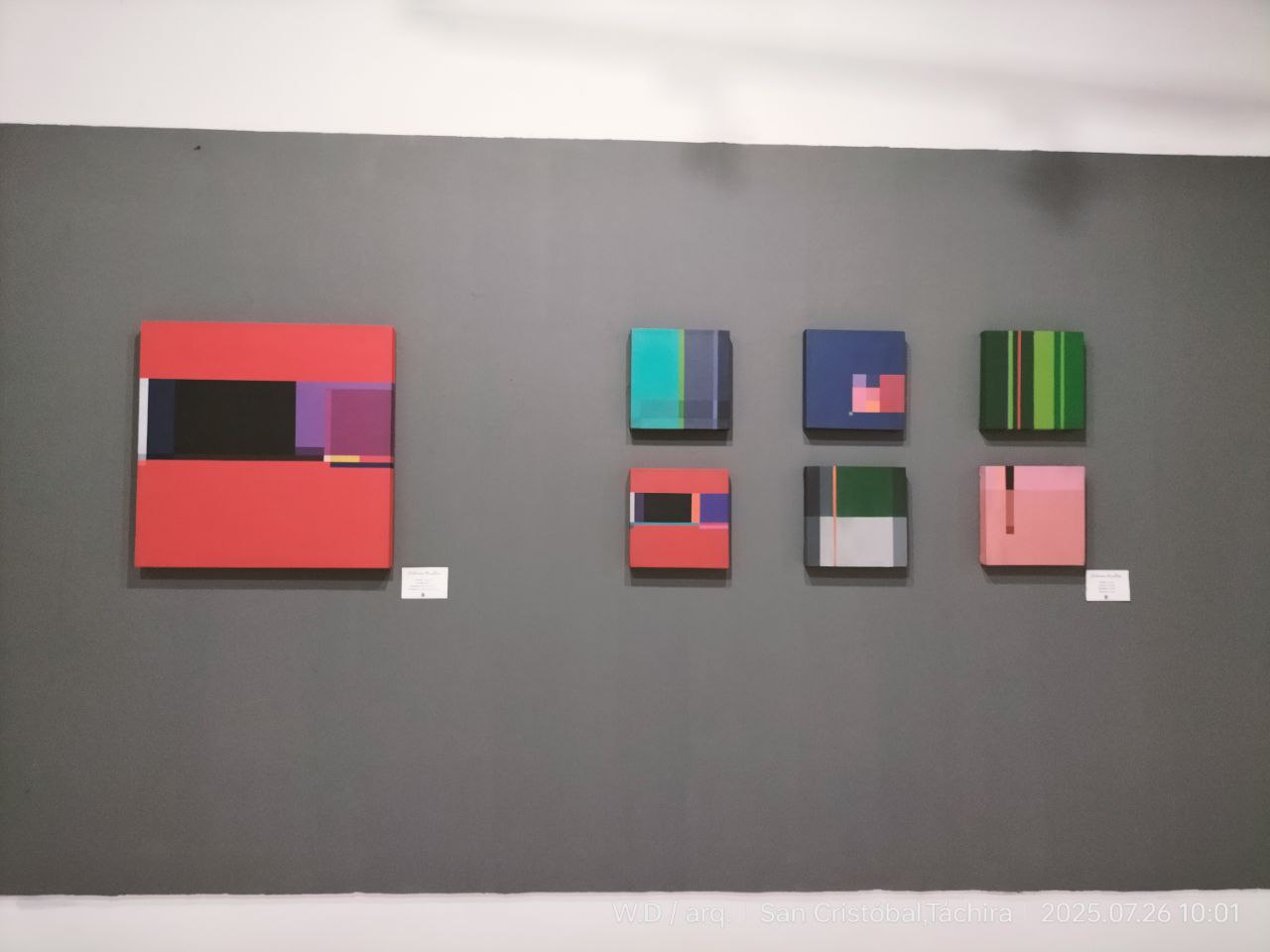 Pues eso… Que Maury Méndez intenta, con esta muestra pictórica suya -cerca de una veintena de obras en distintos formatos- develarnos esos COLORES OCULTOS con los cuales Vicente Gerbasi le ha estimulado a pintar. Y es más que desde el «Abstraccionismo Geométrico» diría yo que desde el mismo «Esencialismo Cromático-Espacial» del viejo Barragán, que Maury nos propone a nosotros observadores despistados- está ‘su experiencia fenoménica’ para que nos permitamos nosotros mismos ser afectados y envueltos por ella. En ausencia de representación. Sin figuración alguna. Cero anécdota. Ni nos atrevamos a ‘guiarnos’ por el título de cada pieza. Allí no hay clave interpretativa alguna para ‘buscar el significado’ ni lo que ‘el pintor nos quiere decir ‘. No hay coartada en ello que soporte nuestra pereza sensorial ni mental. Sólo el color dosificado modularmente y compartiendo por proximidad o contraste, por yuxtaposición o armonía, un mismo espacio pictórico puesto ante nuestra mirada.