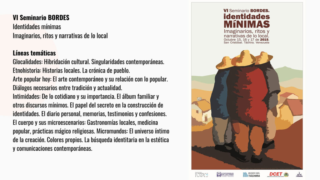 Como parte importante del 6to Seminario Bordes, IDENTIDADES MÍNIMAS, se desarrollará una exposición de artes visuales en la sede de la Universidad de Los Andes, Táchira y la Dirección de Cultura del Estado.